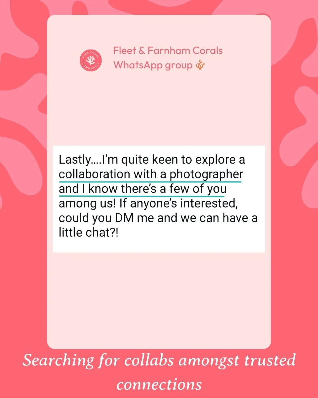 Pink Coral isn’t a fan club for the founder. I’m not here to be the loudest voice in the room or to sell you my own thing. I’m not part of any “in crowd.” I’m just a normal gal who knows what it feels like to do this alone, and who wants to connect the quieter ones so we can all grow together.